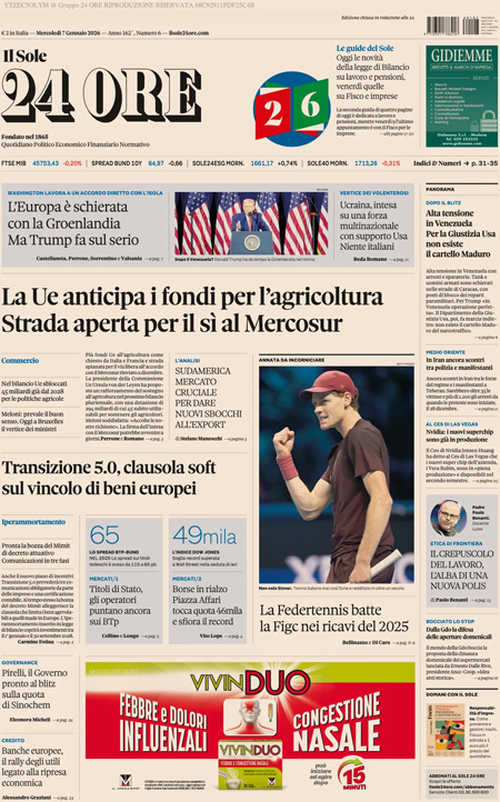 “La Ue anticipa i fondi per l’agricoltura. Strada aperta per il sì al Mercosur” (Il Sole 24 Ore).
