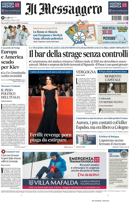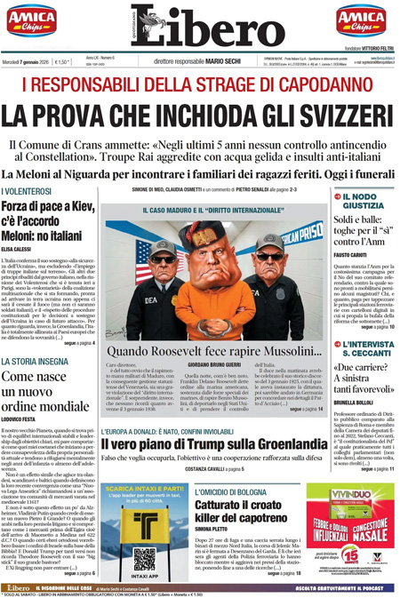 L'EDICOLA, Il Corriere: "Groenlandia, stop europeo a Trump". Repubblica: "Forza di pace in Ucraina". Libero: "La prova che inchioda gli svizzeri" - Blitz Quotidiano