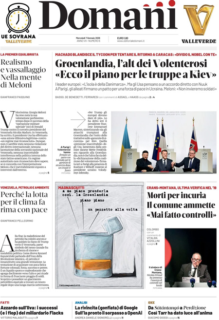 “Groenlandia, l’alt dei Volenterosi. Ecco il piano per le truppe a Kiev” (Domani).
