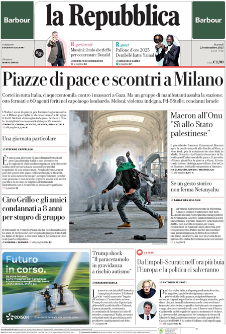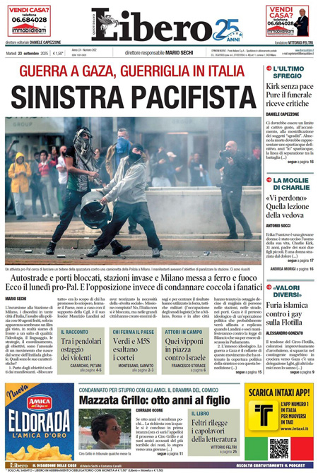 Home » L’EDICOLA, Il Corriere: “Guerriglia a Milano su Gaza”. Il Fatto: “Marea pacifica, ma tutti parlano di 100 violenti”. La Verità: “Guerra agli italiani per la pace a Gaza”