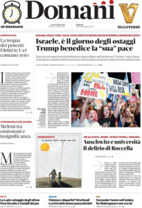 “Israele, è il giorno degli ostaggi. Trump benedice la ‘sua’ pace” (Domani).