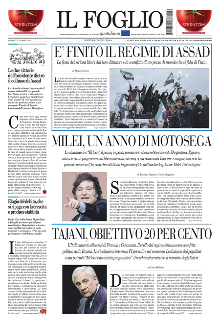 “Con la caduta di Assad si apre una transizione difficile e piena di incognite: da un lato, ribelli vittoriosi già spaccati in fazioni, dall’altro la volontà di ripristinare un sistema democratico. Erdogan ha in mano un risultato che persegue da anni, ma non pensava così vicino. E ora aumenta il suo potere di aprire e chiudere i rubinetti verso la Ue”. (L’intervista a Guido Crosetto su La Stampa)