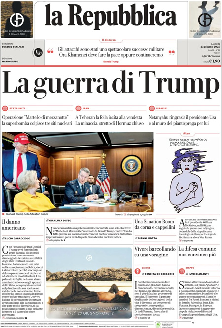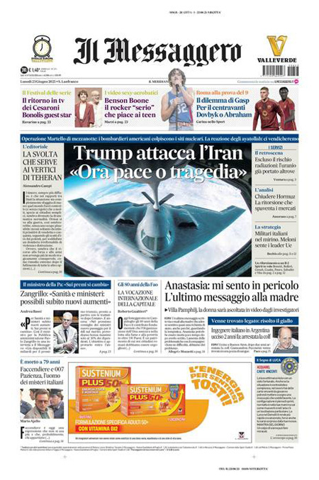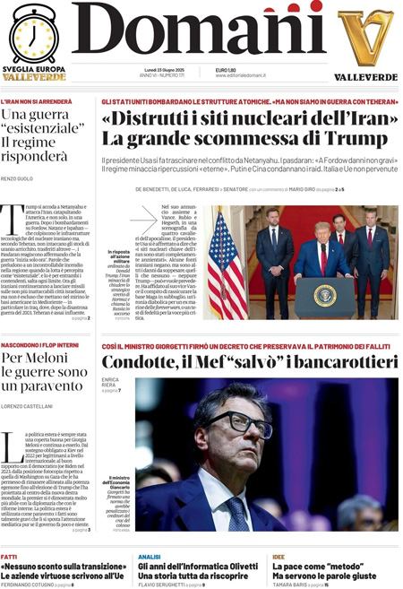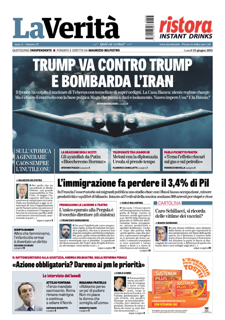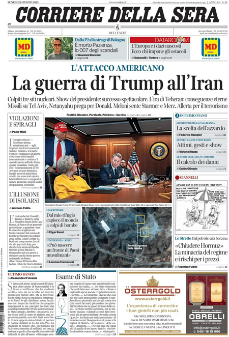 Home » L’EDICOLA, Il Corriere: “La guerra di Trump all’Iran”. Il Sole 24 Ore: “Gli Usa: obiettivi raggiunti, ora trattare. L’Iran: pronti a chiudere Hormuz”. La Verità: “Trump va contro Trump e attacca l’Iran”
