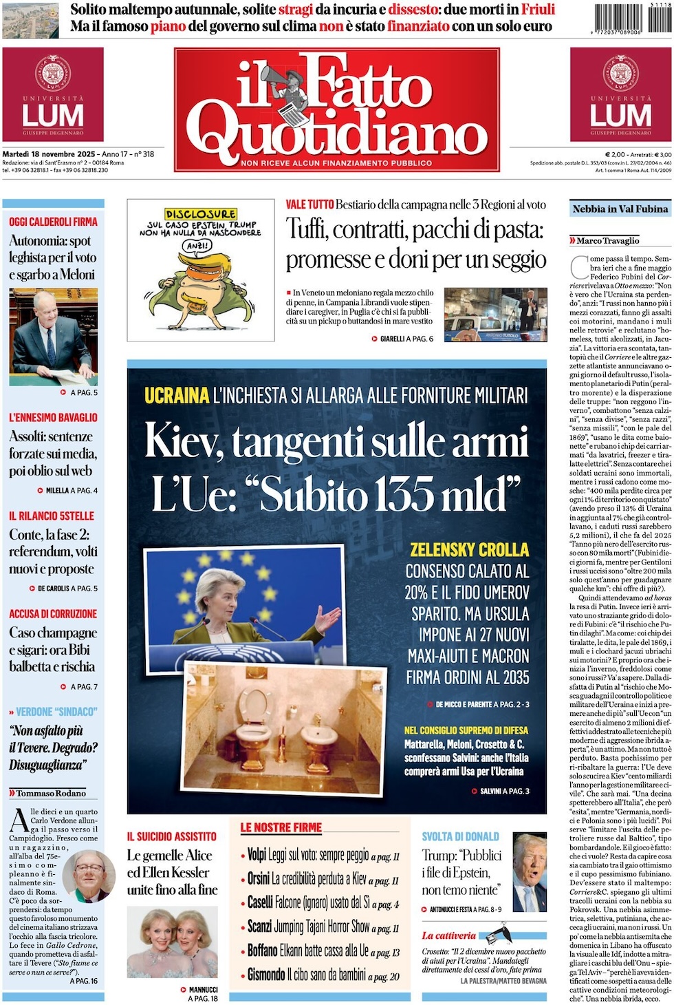 “Nebbia in Val Fubina”, di Marco Travaglio: “Come passa il tempo. Sembra ieri che a fine maggio Federico Fubini del Corriere rivelava a Otto e mezzo: “Non è vero che l’Ucraina sta perdendo”, anzi: “I russi non hanno più i mezzi corazzati, fanno gli assalti coi motorini, mandano i muli nelle retrovie” e reclutano “homeless, tutti alcolizzati, in Jacuzia”.