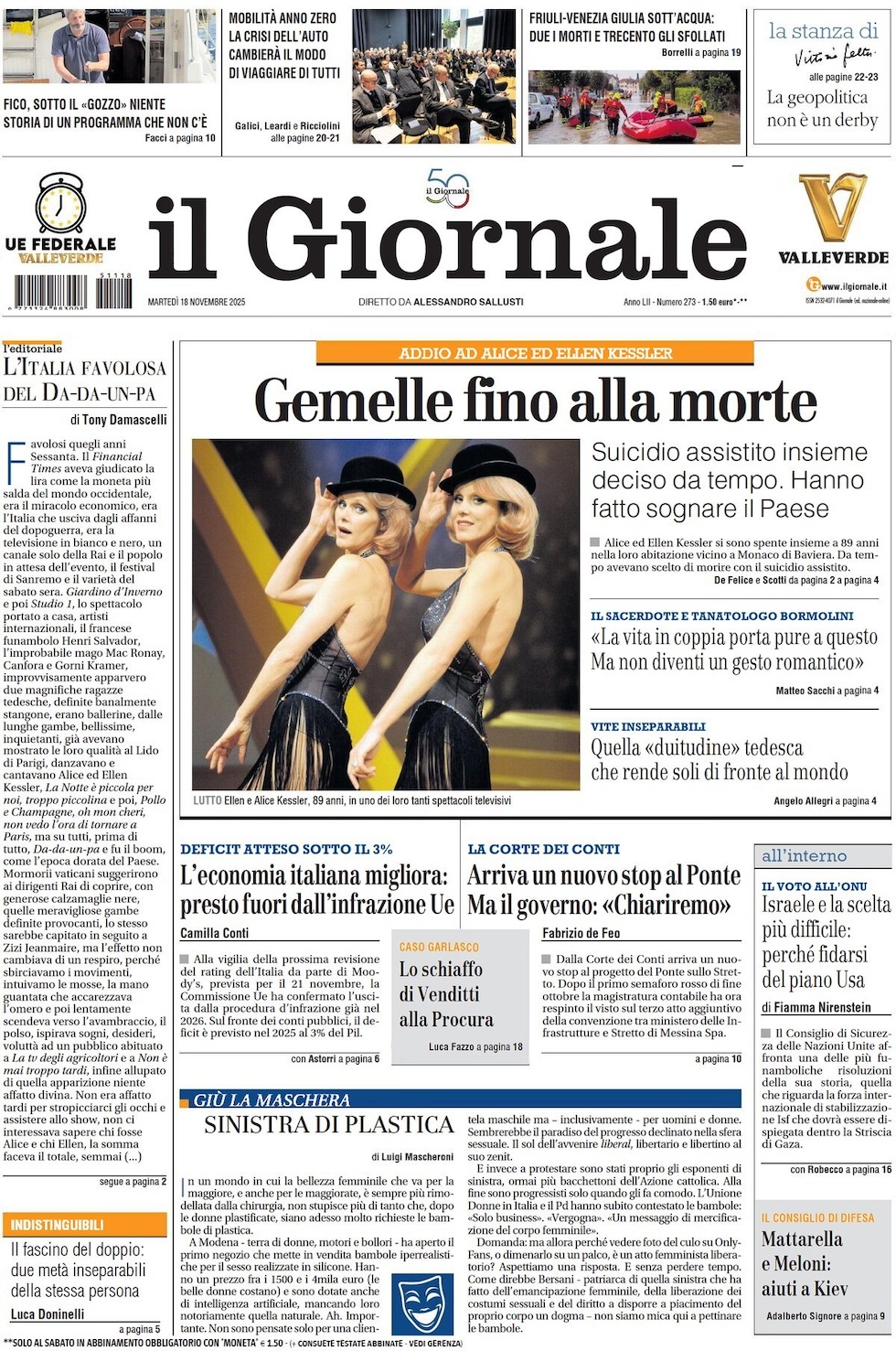 “L’eutanasia delle Kessler” (Libero).