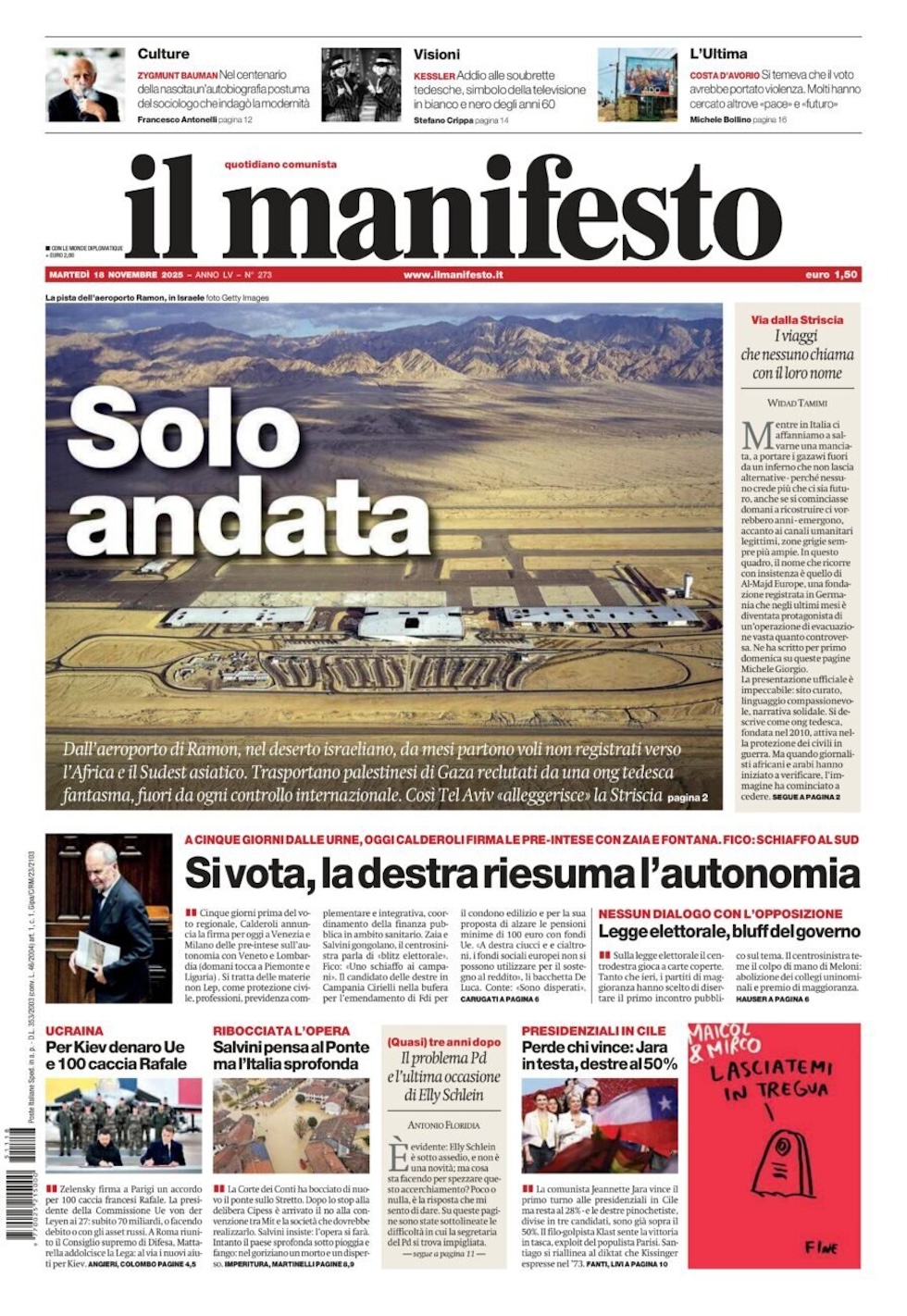 “Solo andata” (Il Manifesto).
