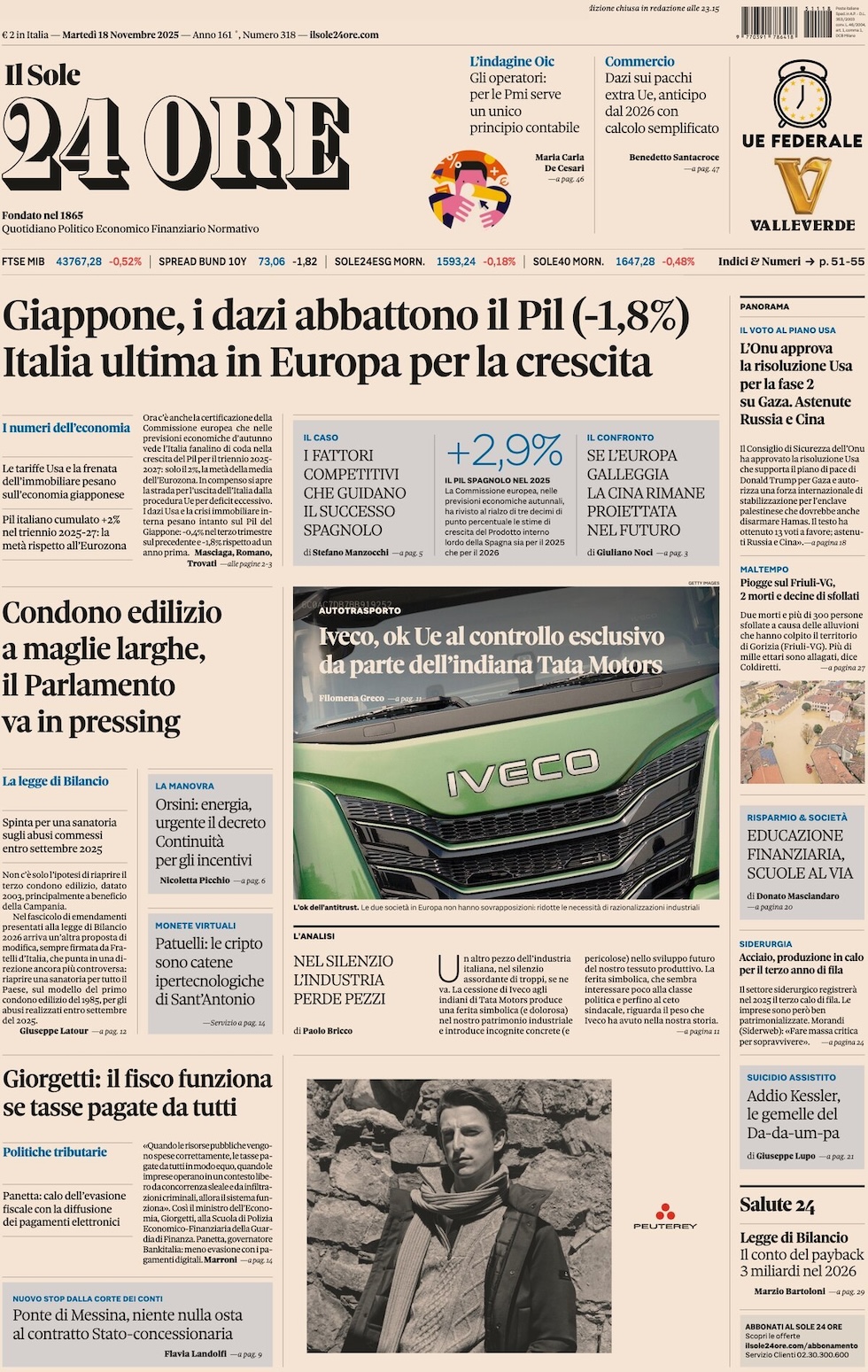 “Giappone, i dazi abbattono il Pil (-1,8%). Italia ultima in Europa per la crescita” (Il Sole 24 Ore).