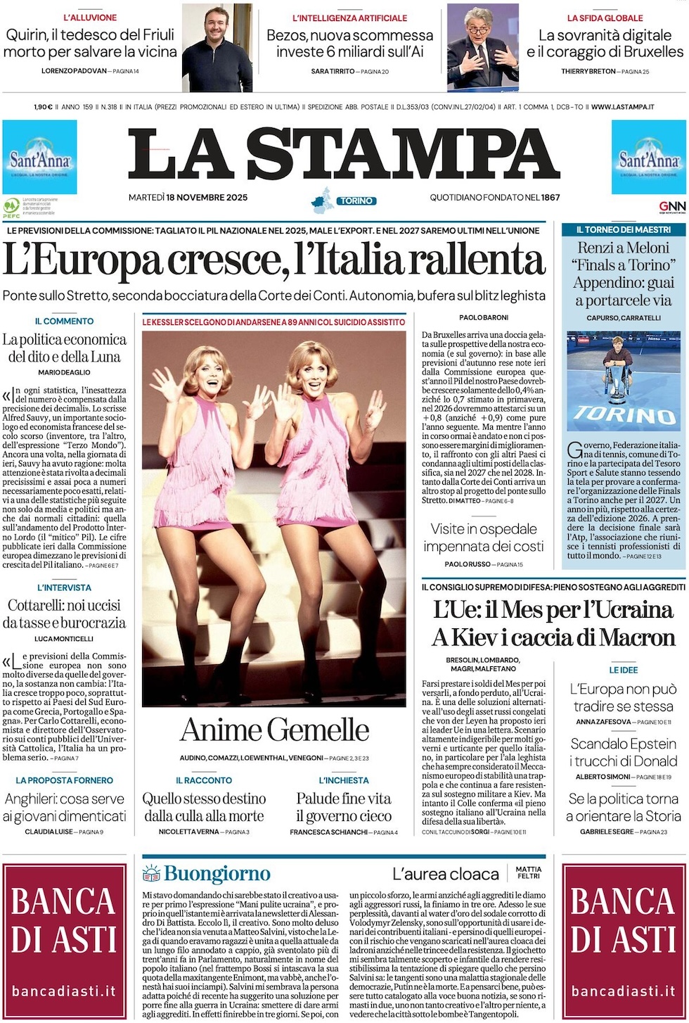 “L’Europa cresce, l’Italia rallenta” (La Stampa).
