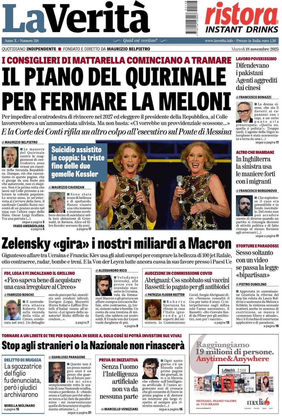 “Il piano del Quirinale per fermare la Meloni” (La Verità).