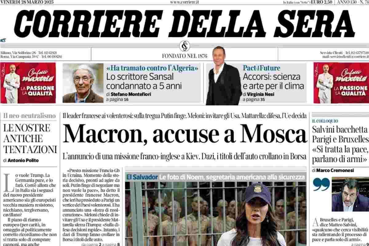 L'EDICOLA, Il Corriere: "Macron, accuse a Mosca". Repubblica: "Volenterosi ma divisi". Il Fatto: "La nuova prescrizione per salvare Santanchè" - Blitz Quotidiano