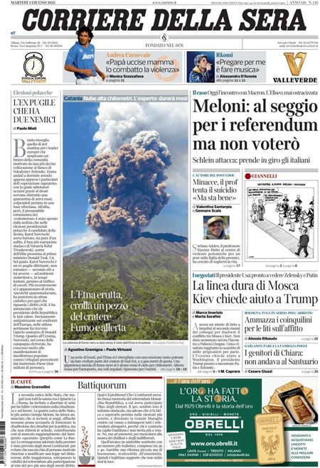 “Meloni: al seggio per i referendum ma non voterò” (Il Corriere della Sera).