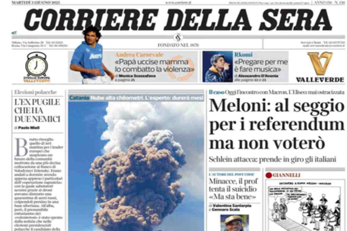 “Meloni: al seggio per i referendum ma non voterò” (Il Corriere della Sera).