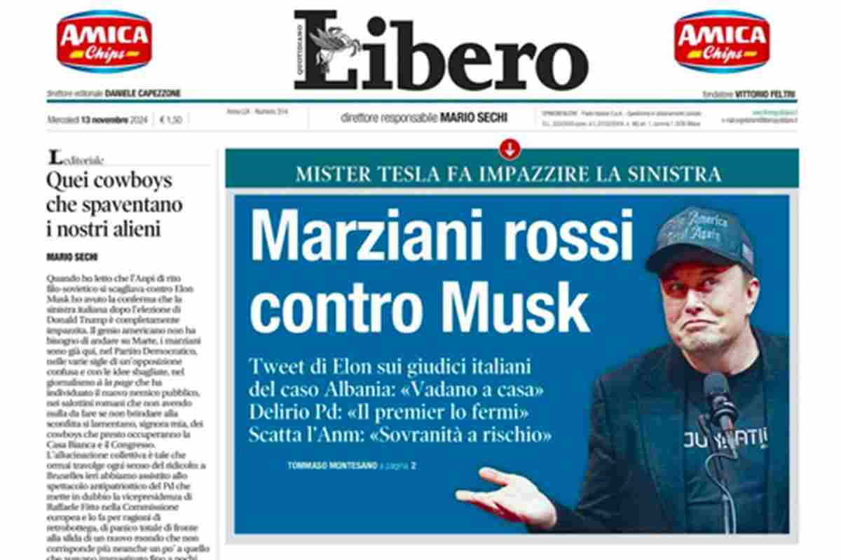 Home » L’EDICOLA, il Corriere: “Musk contro i giudici italiani”. Repubblica: “L’attacco dopo la bocciatura del decreto del governo”. Libero: “Marziani rossi contro Elon”