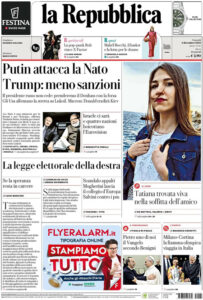 “Putin attacca la Nato. Trump: meno sanzioni” (La Repubblica).