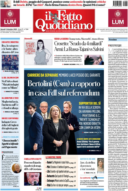 “Bertolini (Csm) a rapporto in casa FdI sul referendum” (Il Fatto Quotidiano).