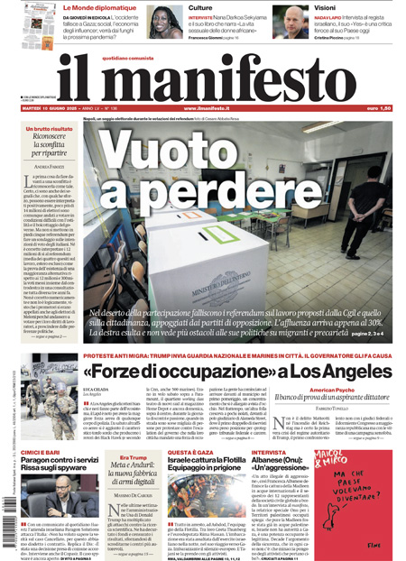 “L’asticelly”. L’editoriale di Marco Travaglio: “Fra i tanti errori commessi da chi ha promosso i cinque referendum miseramente falliti ieri, non c’è quello di averli promossi. Quando nacque l’idea, i cinque quesiti furono pensati come vagoni da agganciare alla locomotiva dell’Autonomia differenziata: la secessione dei ricchi che avrebbe mobilitato la maggioranza degli elettori, anche al Sud”.