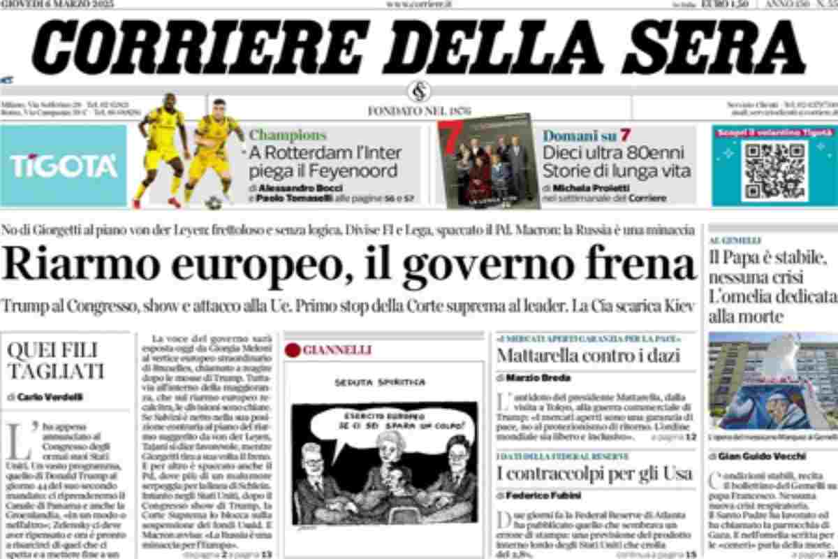“Riarmo europeo, il governo frena” (Il Corriere della Sera).