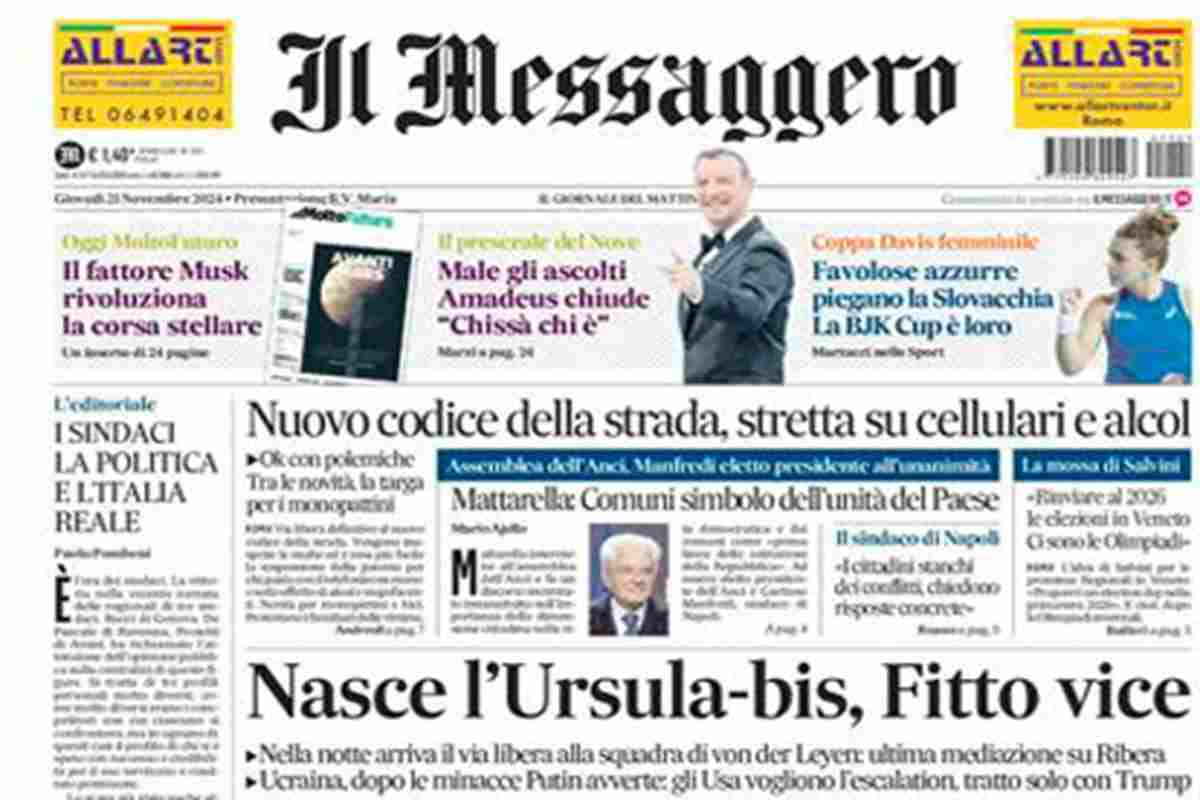 “Nasce l’Ursula bis, Fitto vice”. (Il Messaggero)