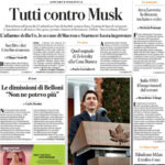 Il possibile accordo fra governo e SpaceX è l’argomento principale sulle prime pagine di oggi. “Scontro sui satelliti di Musk” titola il Corriere della Sera. “Tutti contro Musk” è l’apertura di Repubblica. “Musk-Meloni, tensione Ue” è invece la prima pagina della Stampa.