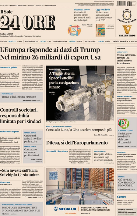 “L’Europa risponde ai dazi di Trump. Nel mirino 26 miliardi di export Usa” (Il Sole 24 Ore).