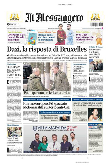 L'EDICOLA, Il Corriere: "Sì al riarmo Ue, l'Italia è divisa". La Stampa: "Tregua, Trump minaccia Putin". Il Fatto: "L'Europa dichiara guerra alla pace" - Blitz Quotidiano