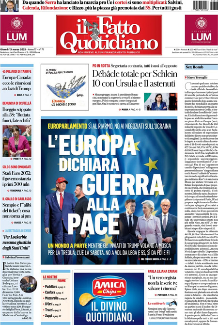 “L’Europa dichiara guerra alla pace” (Il Fatto Quotidiano).