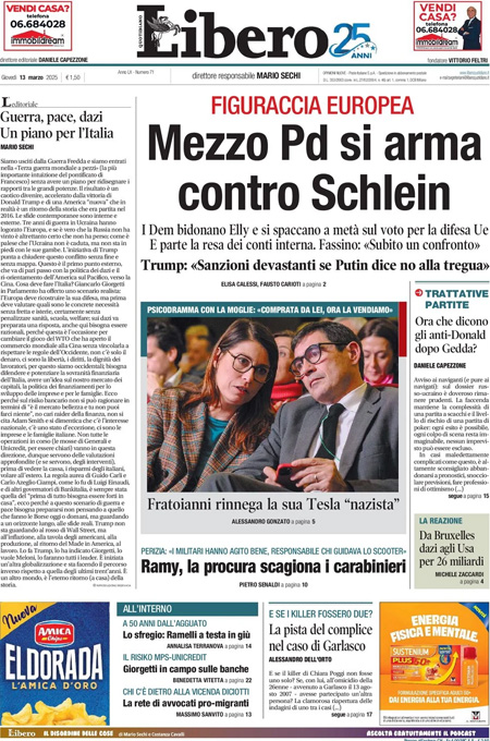 “Mezzo Pd si arma contro Schlein” (Libero).