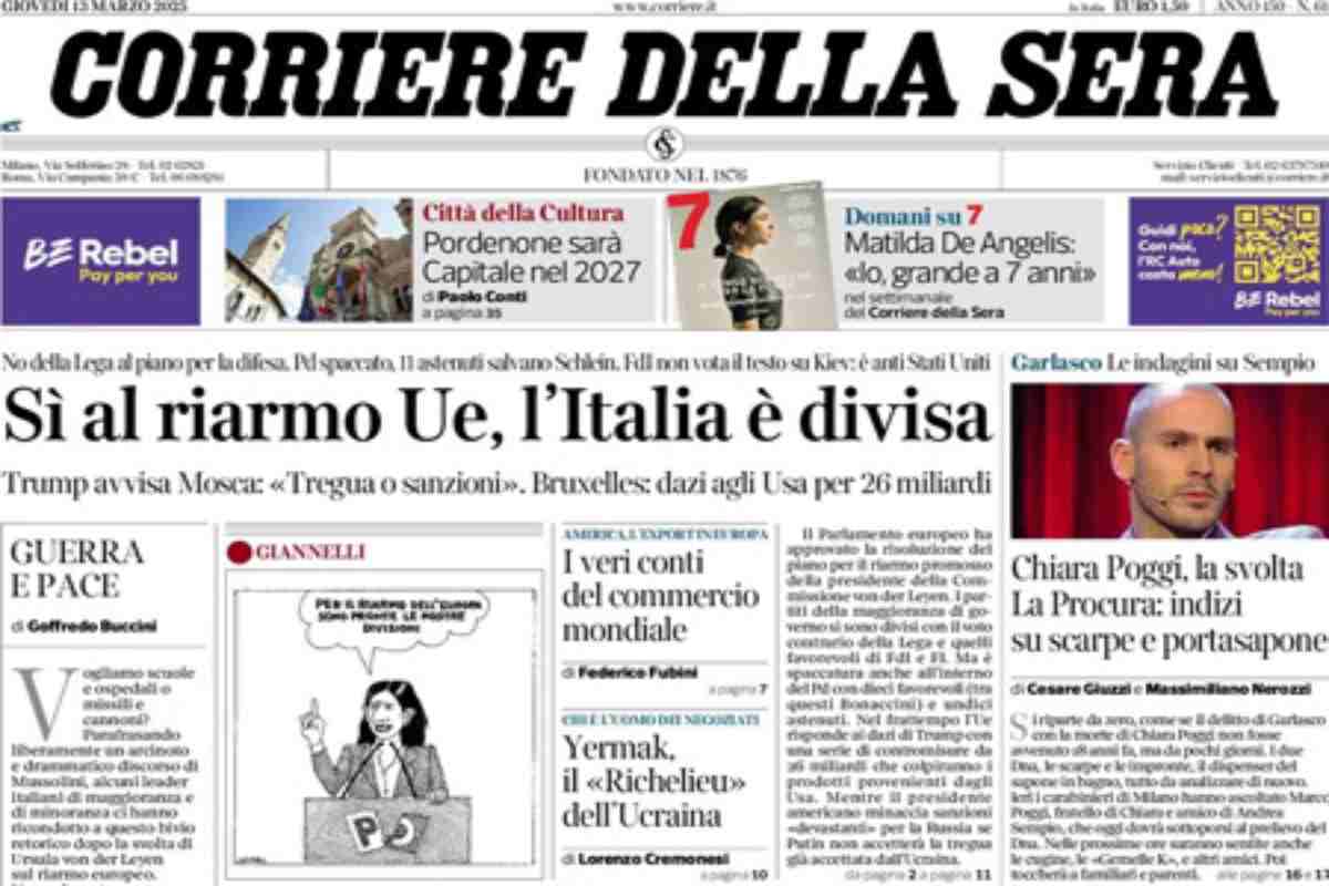“Sì al riarmo Ue, l’Italia è divisa” (Il Corriere della Sera).
