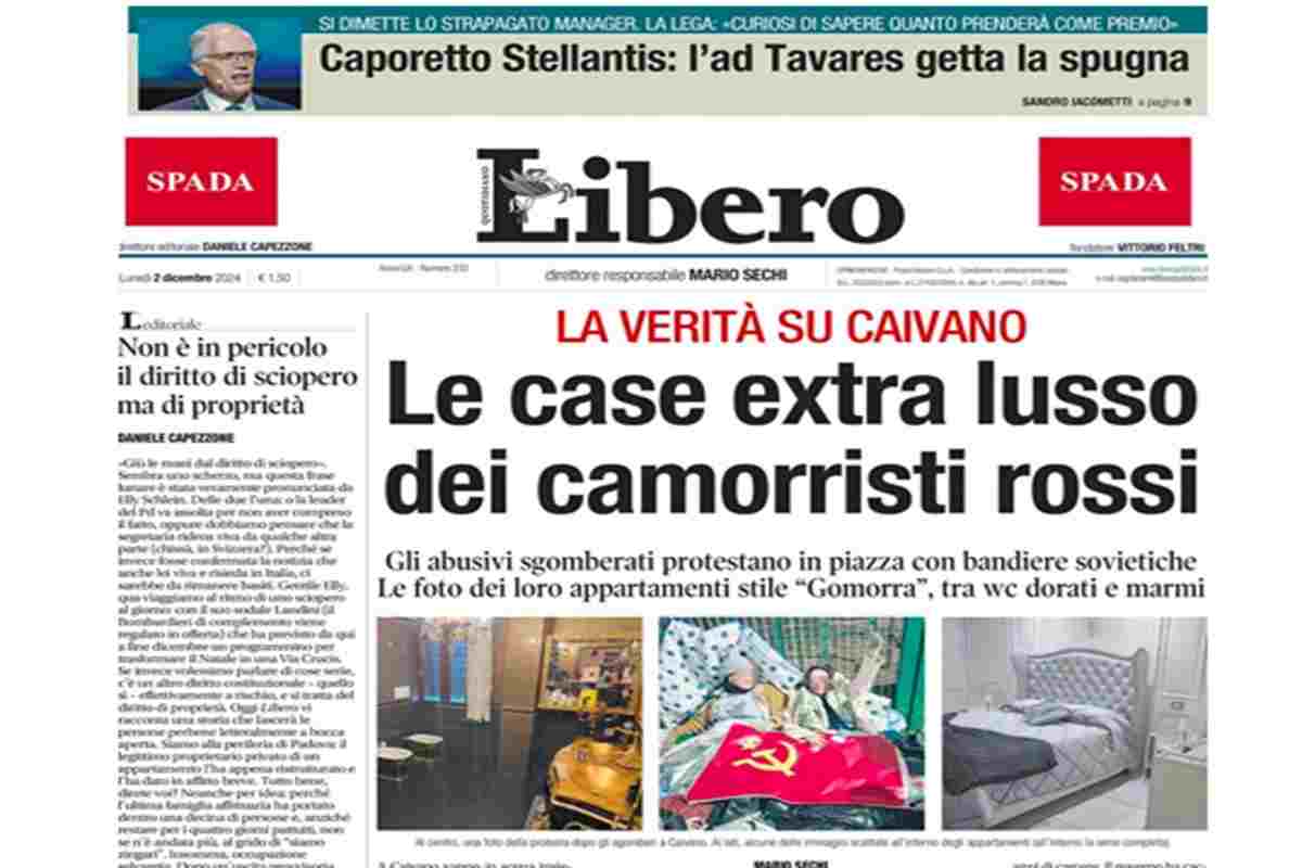 “Le case extra lusso dei camorristi rossi”. (Libero)