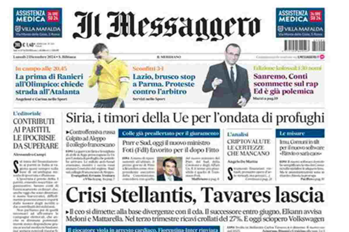 “Cristi Stellantis, Tavares lascia”. (Il Messaggero)