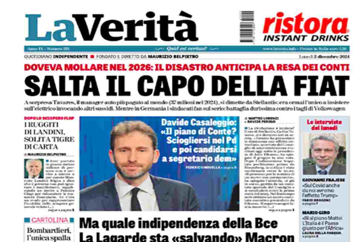 “Salta il capo della Fiat”. (La Verità)