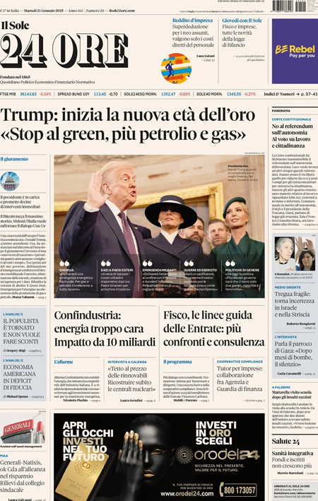 “Trump: inizia la nuova età dell’oro”. (Il Sole 24 Ore)
