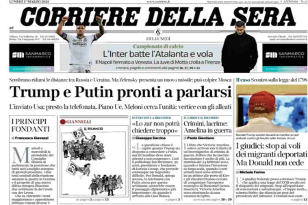 L'EDICOLA, Il Corriere: "Trump e Putin pronti a parlarsi". Repubblica: "Ue, riarmo nazionale". Libero: "Il vero pacifista si chiama Trump" - Blitz Quotidiano