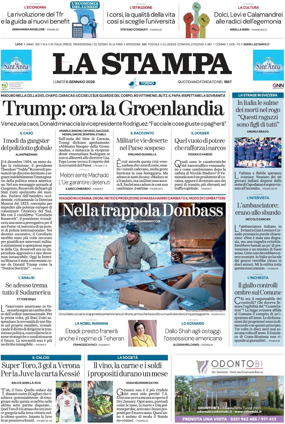 “Trump: ora la Groenlandia” (La Stampa).
