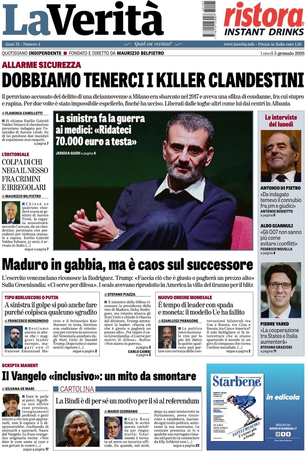 “Dobbiamo tenerci i killer clandestini” (La Verità).