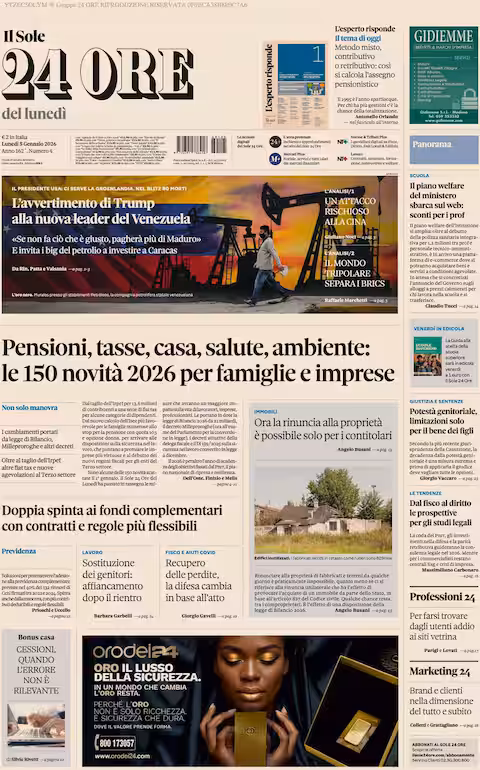 “Pensioni, tasse, casa, salute, ambiente: le 150 novità 2026 per famiglie e imprese” (Il Sole 24 Ore).