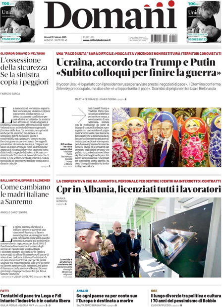 “Ucraina, accordo tra Trump e Putin. “Subito colloqui per finire la guerra” (Domani).