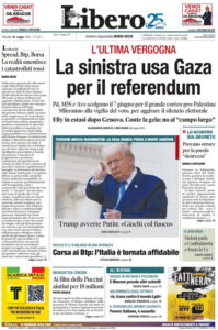 Sono diverse le notizie di oggi in apertura sui quotidiani: l’assemblea annuale di Confindustria; gli aiuti nella Striscia di Gaza e la confusione della gestione da parte della Gaza Humanitarian Foundation; le critiche del presidente Donald Trump a Vladimir Putin per gli ostacoli nei negoziati con l’Ucraina. “Trump, scontro aperto con Putin”, titola Il Corriere della Sera. “La disperazione di Gaza”, è l’apertura di Repubblica. “La sinistra usa Gaza per il referendum”, è invece la prima pagina di Libero.