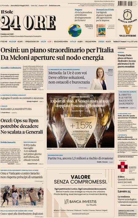 “Orsini: un piano straordinario per l’Italia. Da Meloni aperture sul nodo energia” (Il Sole 24 Ore).