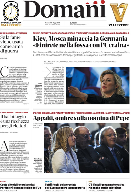 “Kiev, Mosca minaccia la Germania: Finirete nella fossa con l’Ucraina” (Domani).