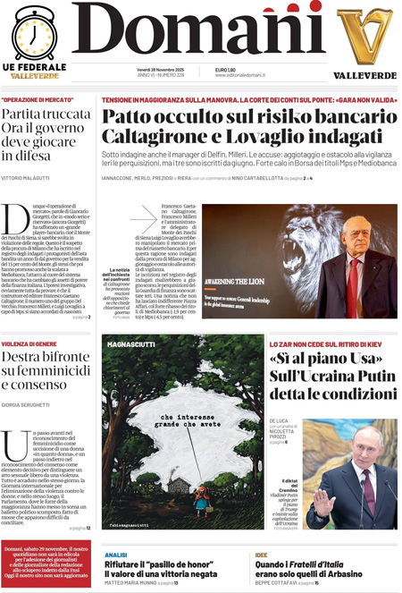 Home » L’EDICOLA, Il Corriere: “Ucraina, la linea dura di Putin”. Repubblica: “Scalata Mps-Mediobanca. Manipolato il mercato”. Il Giornale: “Scudo spaziale e leve, l’Italia si arma”