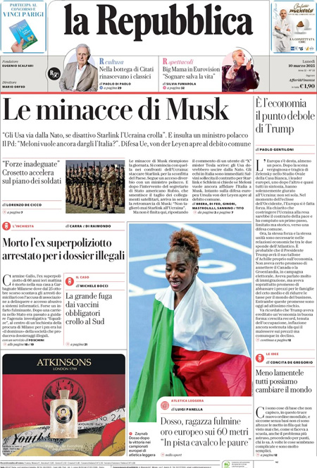 “Le minacce di Musk” (La Repubblica).