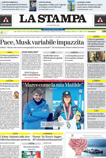 “Pace, Musk variabile impazzita” (La Stampa).
