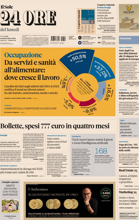 “Da servizi e sanità all’alimentare: dove cresce il lavoro” (Il Sole 24 Ore).