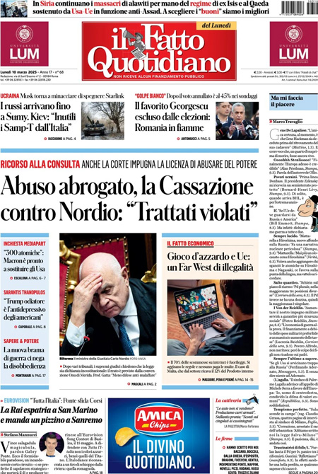 “Abuso abrogato, la Cassazione contro Nordio: Trattati violati” (Il Fatto Quotidiano).