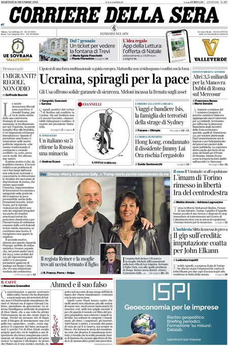 L'EDICOLA, Il Corriere: "Ucraina, spiragli per la pace". Repubblica: "Trump: mai così vicini alla pace". La Verità: "I giudici liberano l'imam che tifa stragi" - Blitz Quotidiano