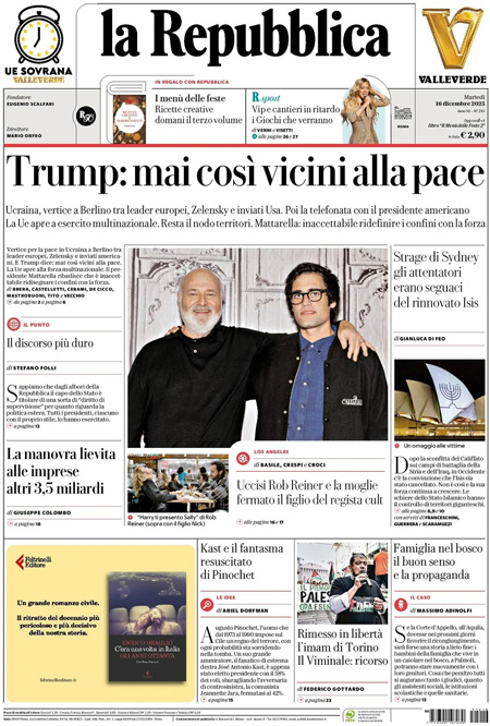 “Trump: mai così vicini alla pace” (La Repubblica).