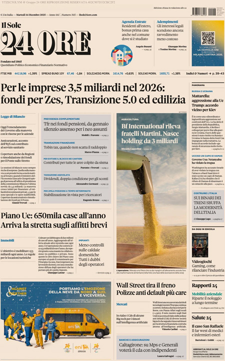 “Per le imprese 3,5 miliardi nel 2026: fondi per Zes, Transizione 5.0 ed edilizia” (Il Sole 24 Ore).