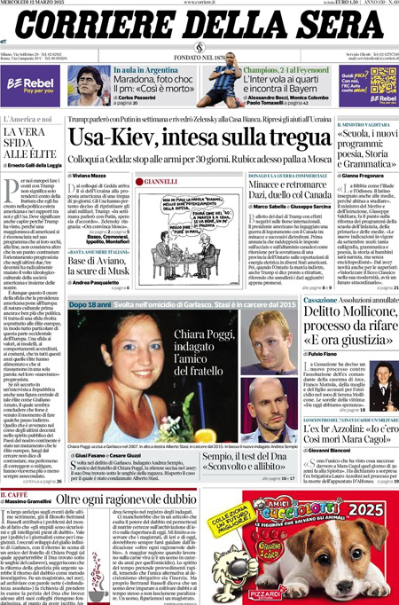 L'EDICOLA, Il Corriere: "Usa-Kiev, intesa sulla tregua". La Stampa: "Ucraina, tregua a un passo". Il Fatto: "Ursula umilia il Parlamento. Pd: riarmo no, ma anche sì" - Blitz Quotidiano