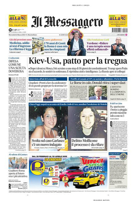 “Usa e Ucraina: Tregua di un mese. Trump scatena l’inferno sui dazi” (Domani).